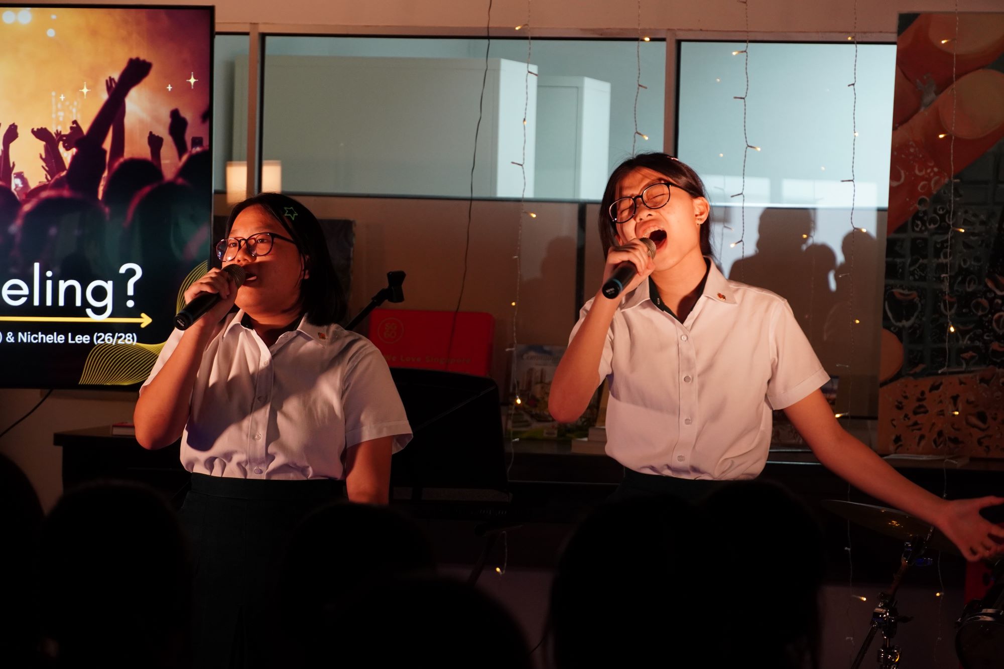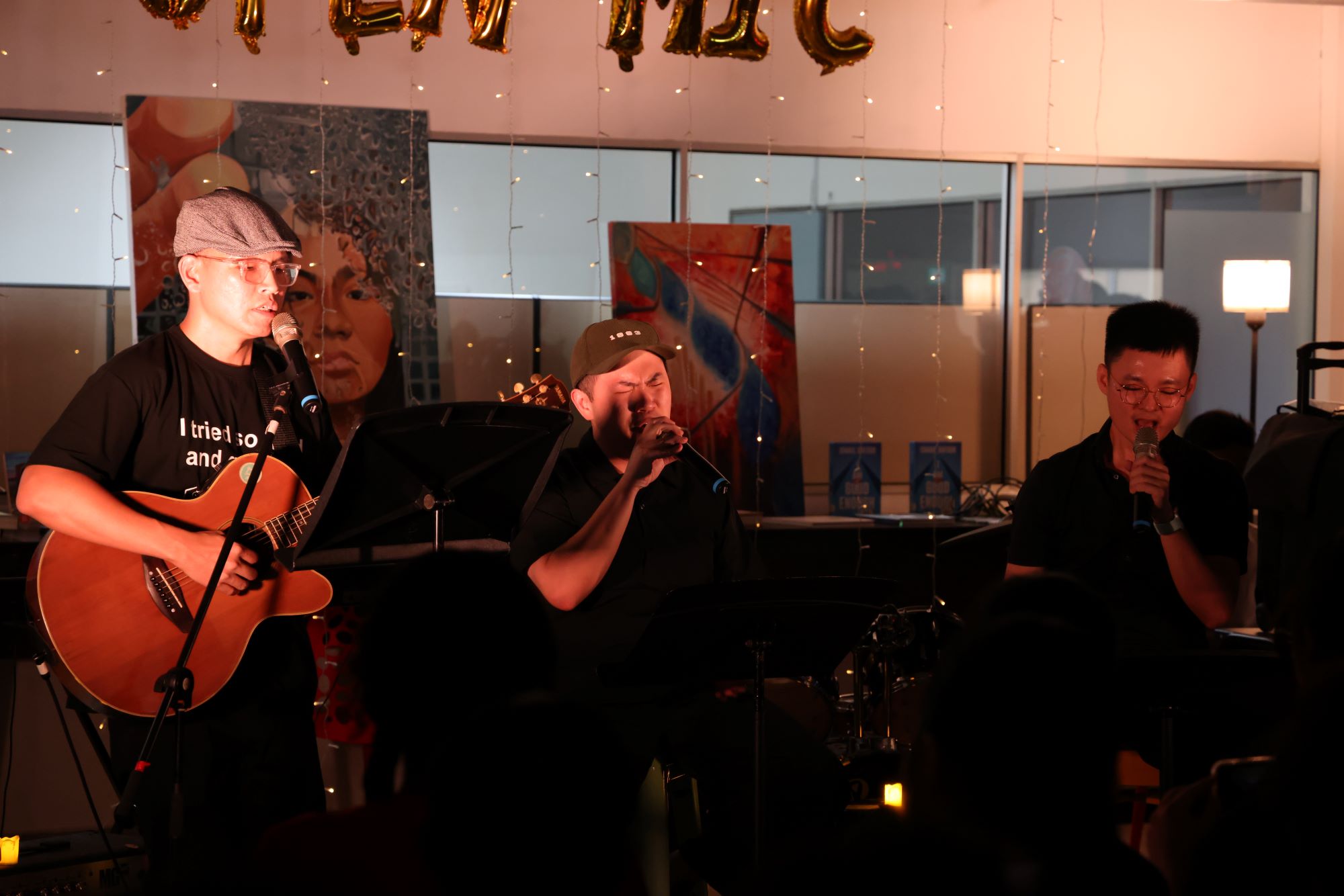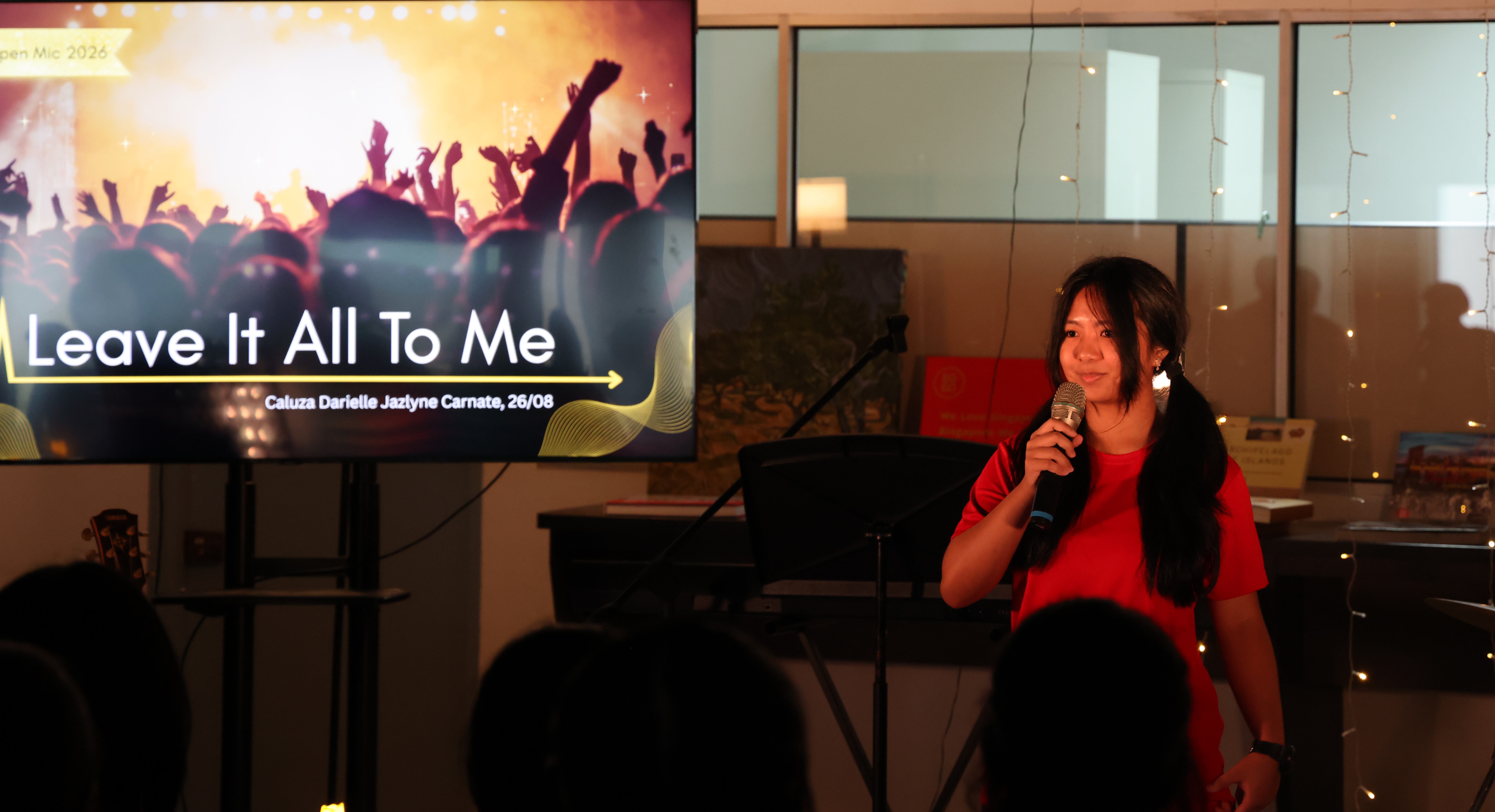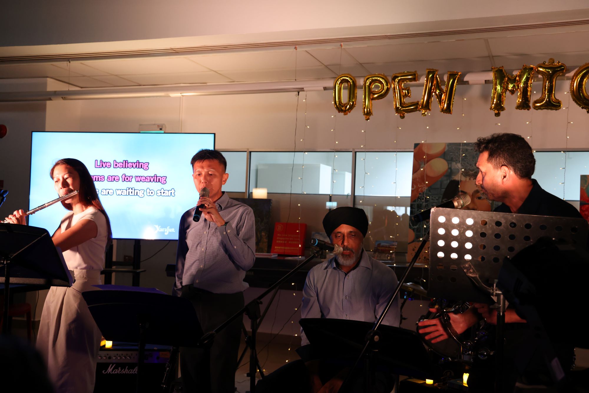 The celebrations concluded with an English Carnival held outside the library, alongside an Open Mic session indoors. Student-run booths, featuring activities such as rhythm-based word challenges, storytelling, and word games, provided interactive and engaging ways for participants to experience language. At the Open Mic, both staff and students took to the stage to share music, creating a warm and inclusive atmosphere.